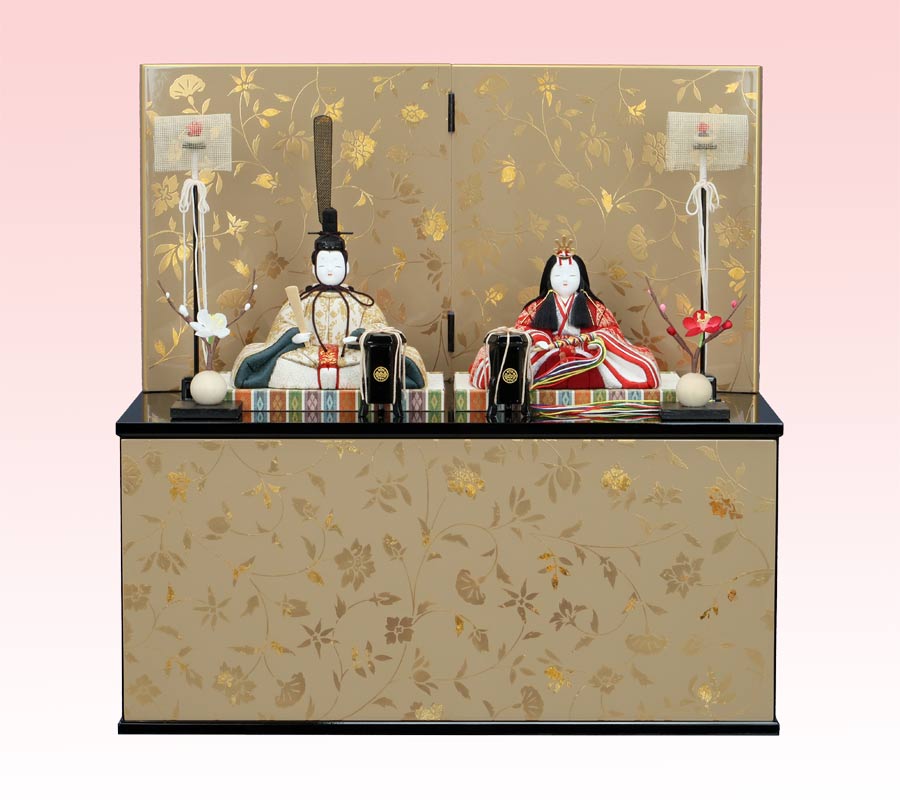 おひな様の意味合いとともに流行に左右されません。豪華な屏風などに目を奪われず主役である雛人形を堪能できるスタイルです。 収納型としては、桐箱がそのまま飾り台になるため最も理にかなったお飾りといえます。